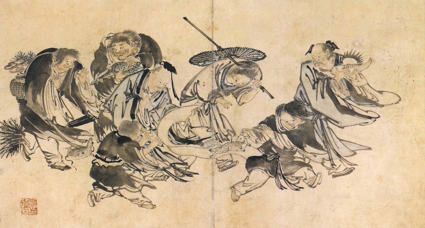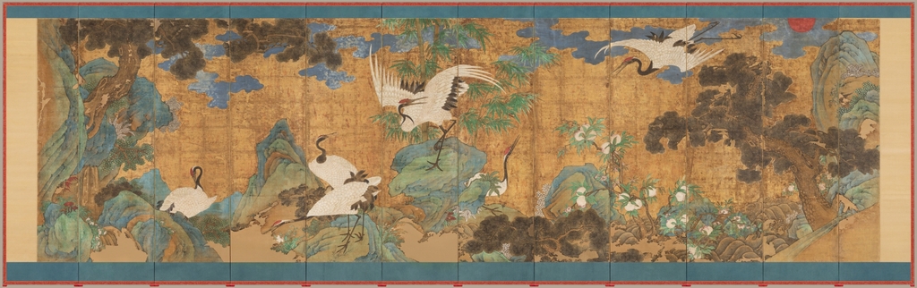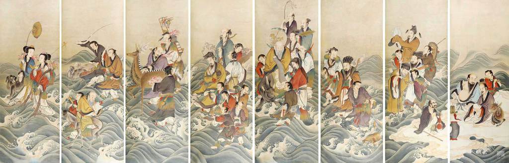 김홍도 필 군선도 [郡仙圖] 병풍(국보). 1776년, 지본수묵담채(비단에 색), 132.8 × 575.8cm, 용인 호암미술관 소장.