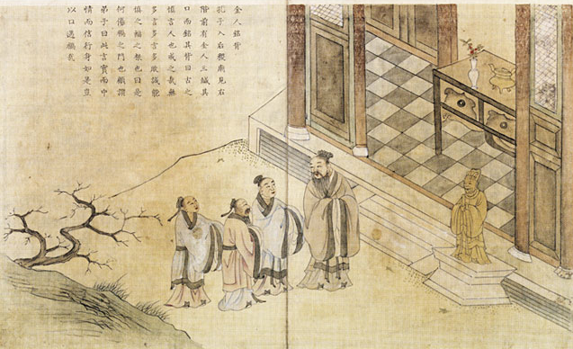 작자미상, ‘금인명배(金人銘背)’ 공자성적도, 조선 1742년, 종이에 색, 39.6×28.7㎝, 국립중앙박물관