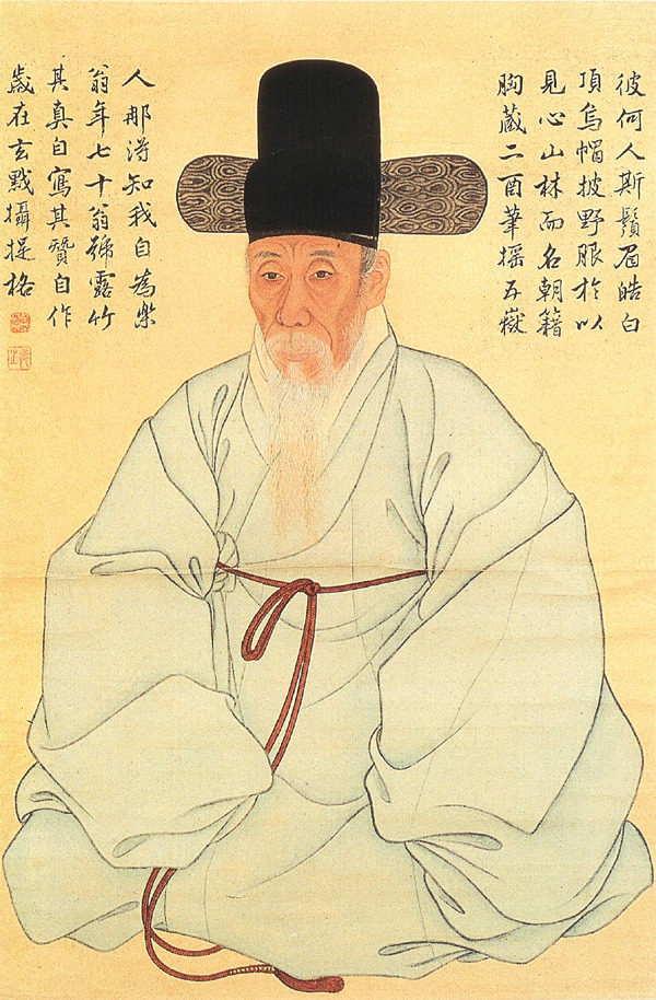 70세 노옹이 그린 자화상입니다. 손도 떨리고 기력도 떨어졌을 터인데, 수염이나 관모의 섬세한 부분까지 일일이 세필로 다 그려냈습니다. 이런 정신을 이어받은 제자, 김홍도의 송하맹호도. 그 재주도 재주려니와 그 성실함이 어디 가겠습니다.