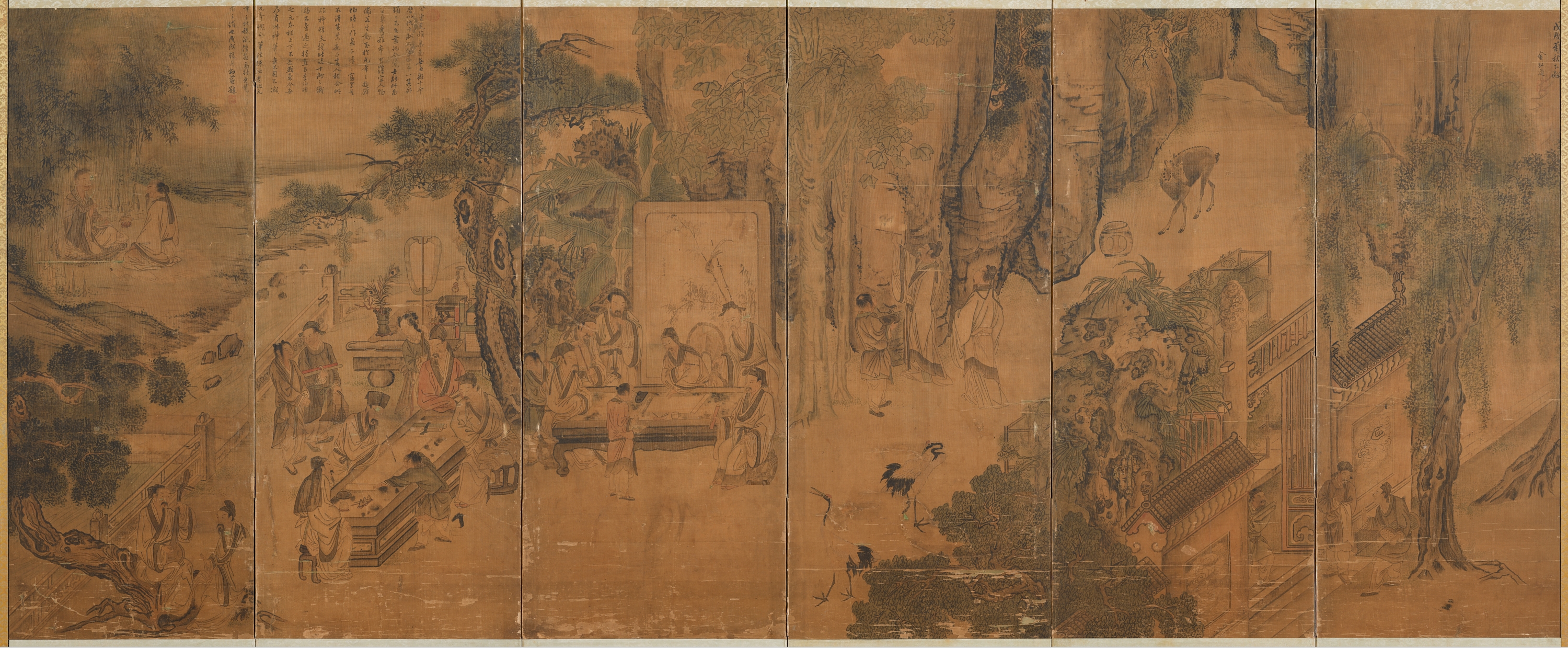 김홍도, 〈서원아집도〉 6폭병풍, 1778년, 종이에 수묵담채, 122.7×287.4㎝, 국립중앙박물관.